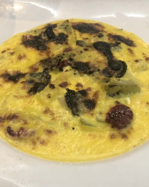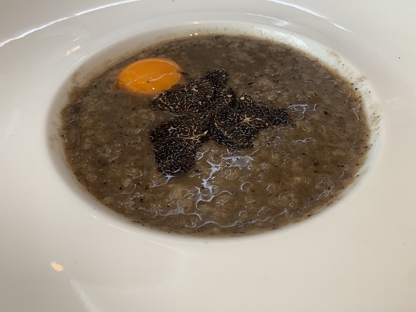 Es tal la cantidad de recetas que María Luisa prepara con este manjar, que el amplísimo restaurante se inunda de su inconfundible aroma y es raro ver desfilar un plato sin algo ‘negro’, porque ahora, en plena temporada, incluso su característico postre de Frutas gratinadas -fruta fresca de temporada con sabayón- se termina con unas lascas. Pero empecemos por el principio…