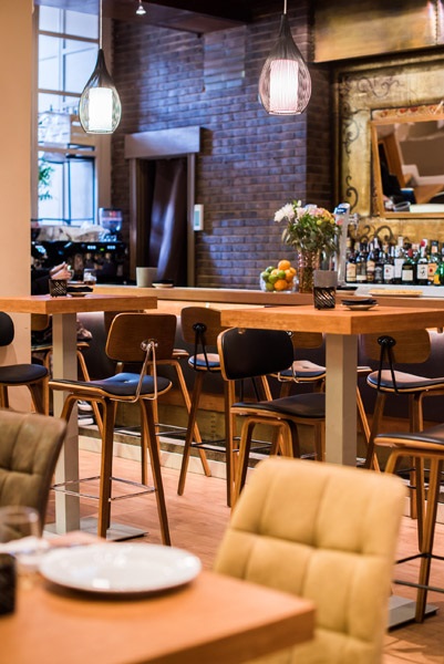 Sencillez en la cocina y en el espacio, del que además del nombre del local, han mantenido algunos elementos decorativos. El resultado es diferente, agradable, con una gran barra -con 10 taburetes-, mesas altas, con capacidad para 12 personas, y bajas, ‘unidas’ por un informal y cómodo banco corrido para otros 18 comensales. Otra opción es sentarse en su agradable terraza -acera ancha, soleada y con buenas sombrillas- con capacidad para 24 personas.