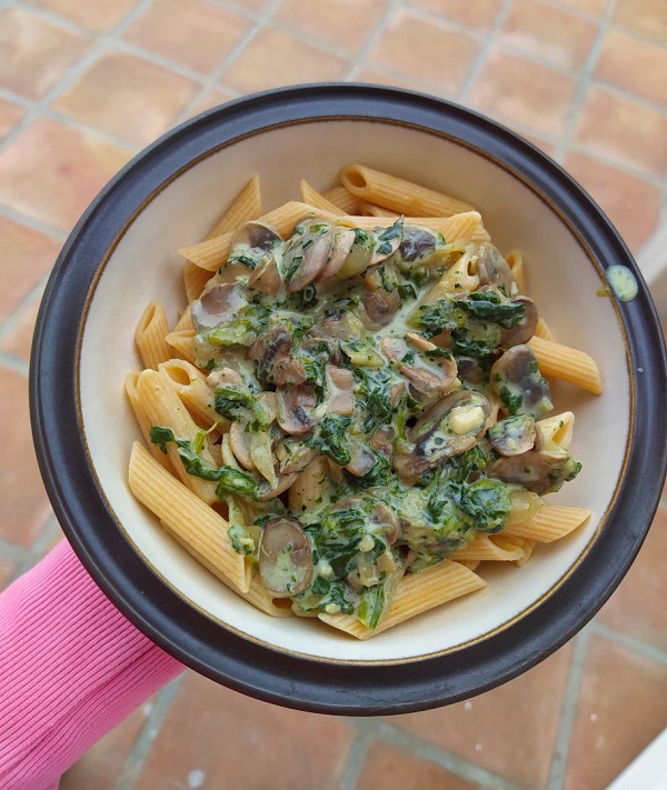 PASTA DE SALSA CON CHAMPIÑONES Y ESPINACAS