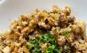 1) Cortar las setas y echarlas en una sartén grande para meter en el horno y saltear con romero en el caso de querer incluir la carne picada, este es el momento.
