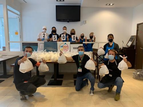 Se comprometió a cocinar 25 menús completos diarios y empezó a colaborar con la Plataforma vecinal de San Blas - Simancas para repartirlos entre los más desfavorecidos, familias con al menos dos niños menores de 7 años o ancianos. Y es que su objetivo, como el de esta asociación, era y sigue siendo proveer de una alimentación mínima, nutritiva y saludable a sectores vulnerables a través de la gastronomía social, aprovechando la capacidad productiva de restaurantes y sus redes de proveedores para generar y distribuir alimentos a quienes más lo necesitan a raíz de la pandemia a la vez que se fomenta la creación de empleo y la reactivación de la actividad empresarial. Incorporaron en su página web una sección de comida solidaria que se podía comprar por 3 €; empezaron en mayo repartiendo 25 menús diarios… y en total, a mediados de septiembre, ya llevan entregados más de 6.000.