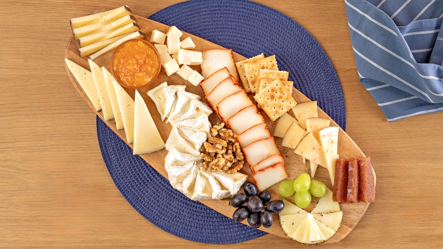 Más allá de la selección, la presentación también juega un papel clave. Para dar dinamismo visual, basta con alternar cuñas, lonchas y pequeños cortes irregulares. Se pueden añadir uvas frescas, frutos secos y crackers para aportar textura y altura, mientras que un toque dulce como membrillo o mermelada de fruta equilibra los sabores intensos. Un Albariño D.O. Rías Baixas refresca el paladar y potencia los matices de la selección.
