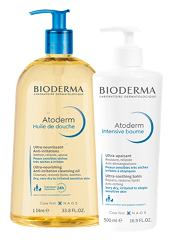 El dúo dermatológico de Atoderm, formado por Atoderm Aceite de ducha y Atoderm Intensive Baume, protege la piel y limita la fijación de las bacterias causantes de la irritación en la piel aumentando la hidratación en un +93%. Ambos productos, ultra calmantes, ultra nutritivos y anti-irritación, han sido formulados para trabajar conjuntamente en la reconstrucción de la barrera de la piel.