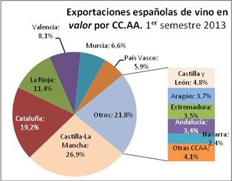 EXPORTACIONES DE VINO Y MOSTO POR COMUNIDADES AUTÓNOMAS – 1er SEMESTRE 2013