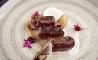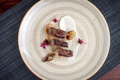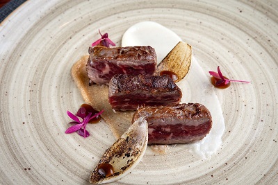 Al precio de 42 Euros se podrá disfrutar de un extenso y variado menú que, si inicia con un Sándwich de txangurro y kétchup de tomate seco, prosigue con Cococha de merluza y holandesa de ikura, Foie micuit con sopa fría de remolacha y PX, Shitake y escabeche de miso rojo para continuar con Pollo de corral con salsa coreana y caviar, Pez mantequilla con jugo de tomates, edamame y wasabi, Pulpo glaseado y crema de choclo y finaliza con Vaca canaria, masato y praliné de avellanas. De postres Cremoso de cabra y manzana verde acompañado de Té verde, lichi y mango.