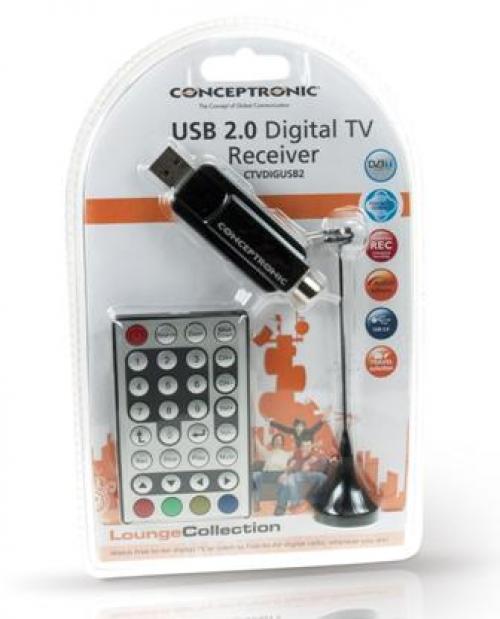 Conceptronic, compañía europea líder en soluciones de movilidad y conectividad para el mercado de gran consumo y pymes, presenta el Sintonizador TDT USB 2.0 Digital Recorder que permite disfrutar en tiempo real de programas de televisión o radio digital gratuita a través de ordenadores de sobremesa, portátiles y Netbooks. El CTVDIGUSB2, de reducido tamaño y diseño elegante, ofrece al usuario la posibilidad de ver la televisión en alta definición y en pantalla completa, además de poder grabar canales de televisión.