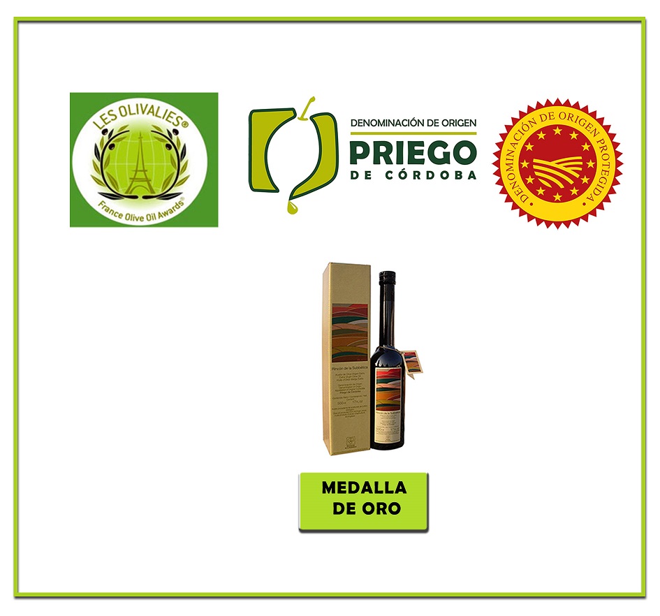 La marca, “Rincón de la Subbética”, de la empresa Almazaras de la Subbética y perteneciente a la Denominación de Origen Protegida “Priego de Córdoba” ha sido premiada, con Medalla de Oro en el Concurso Internacional de Aceite de Oliva Virgen Extra “Les Olivalies 2015”.