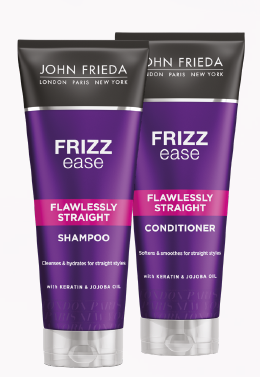La línea Frizz Ease Flawlessly Straight se ha desarrollado especialmente para transformar el cabello más encrespado en uno suave, manejable y con un acabado liso. Ha sido formulada a base de queratina, para nutrir y aportar una suavidad extra. Es apta para el cabello grueso, las melenas onduladas y es perfectamente compatible con aquellas con coloración.