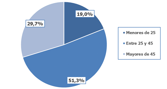 Randstad también ha tenido en cuenta la edad de las mujeres trabajadoras que han firmado contratos durante el pasado enero. El 51,3% de las firmantes fueron profesionales de entre 25 y 45 años, seguidas por más mayores de 45 (29,7%) y las menores de 25 (19%).