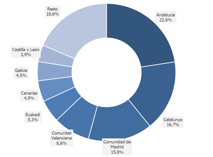 La comunidad autónoma donde se registra el contrato firmado por mujeres también ha sido motivo de estudio. Randstad destaca que durante enero se firmaron 123.182 contratos en Andalucía, lo que supone que un 22,6% de todos los rubricados en el país por mujeres fueron en esta comunidad. La siguen, a distancia, Catalunya (91.080), la Comunidad de Madrid (81.963), la Comunitat Valenciana (46.758), Euskadi (29.064), Canarias (26.835), Galicia (24.482) y Castilla y León (21.438).