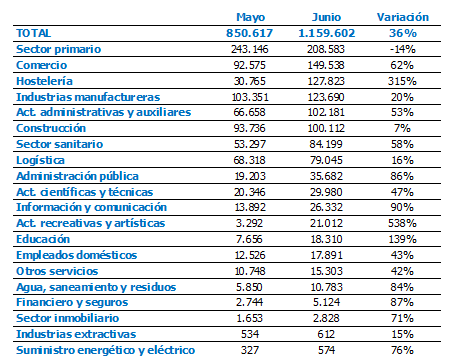 Los mayores incrementos se han producido en las actividades recreativas y artísticas (538,3%), la hostelería (315,5%), educación (139,2%), información y comunicación (89,5%), y financiero y seguros (86,7%).