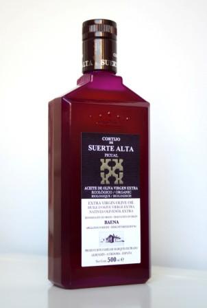 Los aceites de Cortijo de Suerte Alta son aceites de oliva virgen extra de producción 100% ecológica y están amparados bajo la D.O. Baena. Cuenta con dos variedades: