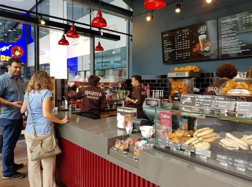 La cafetería, de 60 m², está situada en la entrada principal, la conocida como planta calle, junto al supermercado Carrefour. Se trata de un local muy luminoso, que además cuenta con una gran terraza y es el primero en incorporar menu boards digitales. Estas pantallas cambiantes muestran toda la oferta de la carta, así como las nuevas bebidas de cada temporada.