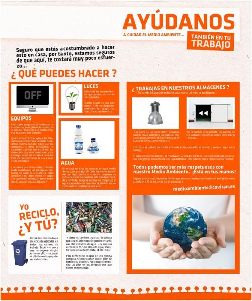 A lo largo del pasado año, Covirán puso en marcha diferentes campañas de concienciación en torno a la importancia de realizar un consumo de agua responsable y en general, incrementar la responsabilidad en materia de eficiencia energética. En el punto de venta, esta labor se ha materializado en el supermercado Covirán la Ilusión, en Granada, donde a través de diferentes soportes de comunicación se recomienda al cliente hacer un mejor uso de los recursos disponibles en un establecimiento donde el mobiliario, la iluminación o los mencionados urinarios secos, están concebidos con este fin.