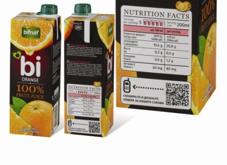 También en los envases de cartón SIG Combibloc están incorporando los fabricantes de alimentos códigos QR que proporcionan a los consumidores información básica sobre el producto directamente en el lineal del supermercado. La compañía macedonia de alimentación Mlekara AD Bitola, por ejemplo, utiliza ahora códigos QR en los envases de sus zumos 'BiFruit' 100%. Este código QR lleva a los consumidores a través de un enlace directo a un sitio web especial que proporciona recetas sobre cómo elaborar distintos cócteles de temporada. También tiene un enlace a la página Facebook de “BiFruit', donde se presentan noticias de actualidad de forma continua. Igor Ivanovski, Category Manager de zumos en Mlekara AD Bitola añade: “La idea que se esconde tras esta tecnología es la de establecer contacto directo con los consumidores. Nos interesan las personas, sus necesidades, y lo que piensan. El enlace con la red social está claro; las páginas a las que se accede vía teléfono inteligente están diseñadas para ser compatibles con aparatos móviles. Este enfoque triangular (Códigos QR-Teléfonos inteligentes-medios de comunicación sociales) canaliza el poder de las tres herramientas de comunicación en una plataforma de comunicación resumida, permitiendo a los consumidores acceder a toda la información en cualquier momento.”