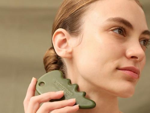 Para concluir, se recomienda hacer una limpieza de toxinas que terminará de purificar rostro, cuello y escote. Se ha de contar con una piedra Gua Sha, diseñada con diferentes formas para adaptarse a las distintas áreas del rostro. De entre todas, nos quedamos con una que acaba de lanzar Boutijour, Greentox Gua Sha. Verás que lleva muchos más dientes “es más drenante que las planas y te permite estimular varios puntos de los meridianos que desintoxican y oxigenan con mucha mejor precisión”, explica Marta Agustí, experta y técnica cosmética de la plataforma de belleza Pure Niche Lab. Con ello, conseguimos “proporcionar un masaje de spa en casa con efecto detoxificante mediante drenaje linfático. La podemos usar en rostro, cuello y escote e, incluso, en la zona de los hombros, donde más toxinas suelen acumularse”, añade desde Boutijour su directora técnica, Bella Hurtado.