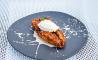 Torrija con manzana, helado de vainilla y toffee