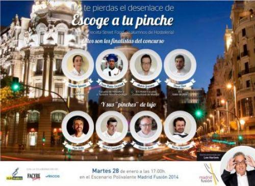 Durante varias semanas, los cuatro chefs han seleccionado las cuatro mejores recetas propuestas por estudiantes de hostelería y restauración de toda España. Son los cuatro finalistas del certamen ‘Escoge a tu pinche’, que llega a su último asalto en una de las citas gastronómicas más importantes del mundo, Madrid Fusión.