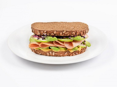 Elaboración: Tostar las rebanadas de pan y reservar. Cortar el aguacate en gajos no muy gruesos y lonchear la manzana. Untar con una cucharadita de mostaza la basa de un pan, y añadir encima una capa de aguacate y otra de manzana. Sobre ésta, extender varias lonchas de Pechuga de Pollo Esencia (90% de carne), de pollo relleno y, sobre el mismo, colocar unos germinados. Repetir con otra capa de aguacate y de manzana y otra de pollo y finalizar tapando el sándwich con el otro pan, untado con mostaza.