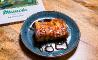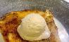 Torrija con manzana, helado de vainilla y espuma de chocolate negro
