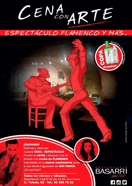 Taconeo, punteo y tenedor. Tres sonidos muy característicos que suman pero no se solapan en la cueva de Basarri Gin Club (C/ Toledo, 82, Madrid. Tel. 91 366 76 21. www.basarriginclub.com), un restaurante dinámico y polivalente del barrio de La Latina en el que cada sala esconde un ambiente y una sorpresa diferente. Un Gin Club desenfadado; unos columpios en un jardín ‘al revés’ ideales para desayunar; dos salones minimalistas y otro más elegante en la planta de arriba lleno de espejos; y la que será el centro de todas las miradas durante los próximos meses: su cueva centenaria. El motivo no es otro que la vuelta de las sesiones de espectáculo flamenco ‘Cenas con arte’ que ya se celebraron el año pasado con gran éxito.