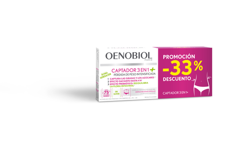 OENOBIOL CAPTADOR 3 EN 1® PLUS+ ayuda a conseguir una pérdida de peso intensificada por lo que es ideal para personas con sobrepeso instalado desde hace tiempo.