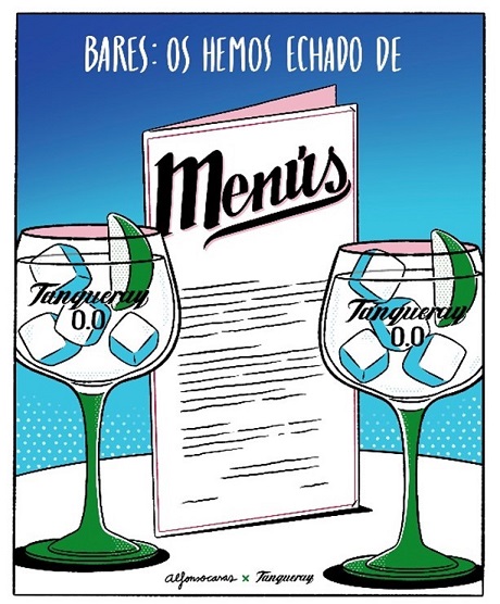 Por primera vez, los escaparates de estos locales se vestirán con unas viñetas muy especiales de Tanqueray 0.0%, realizadas por el ilustrador zaragozano Alfonso Casas, y que muestran mensajes que tratan de lo cotidiano, de lo que nos hace nuestros, con un tono artístico, divertido, optimista, natural y desenfadado.