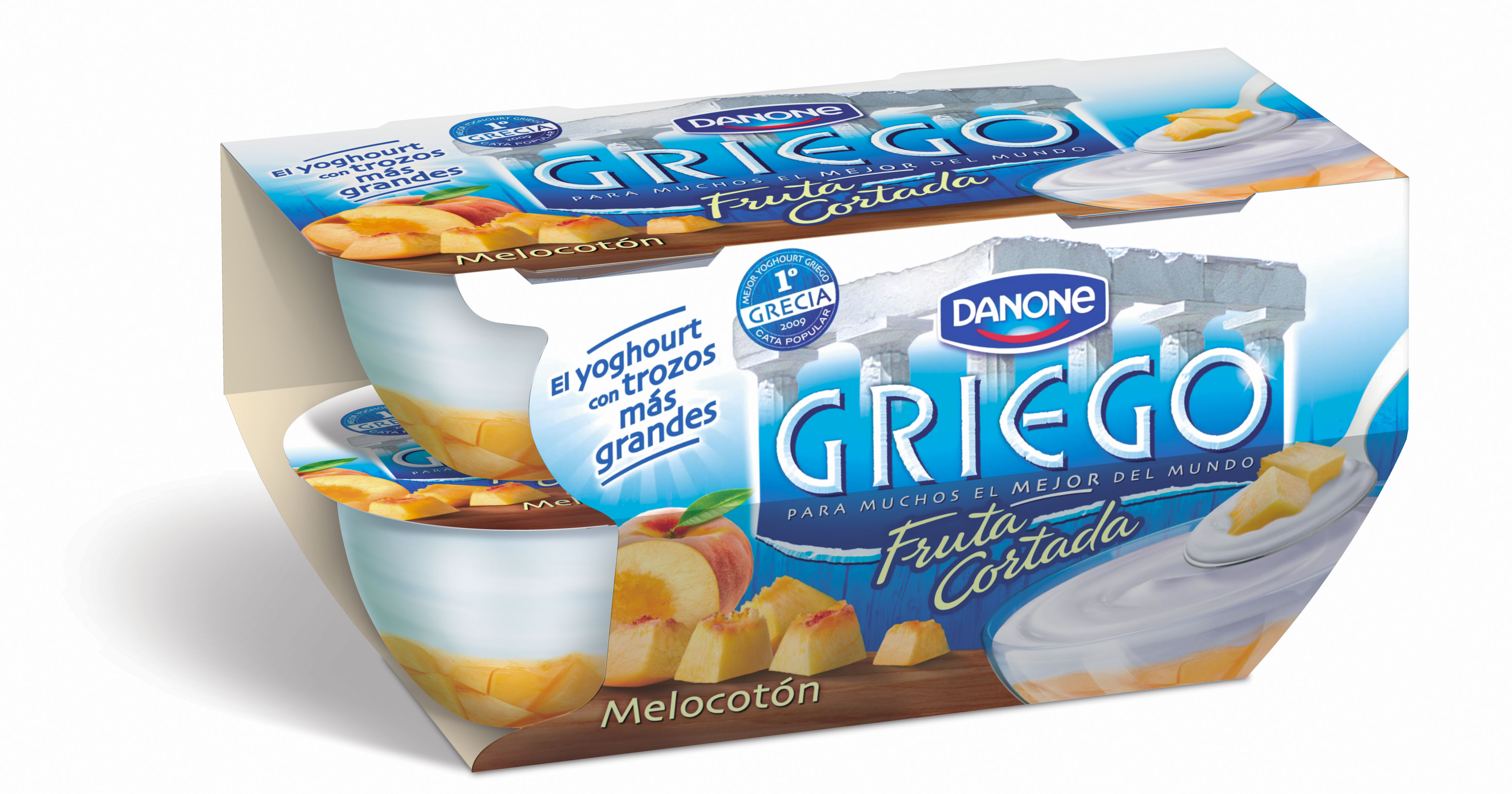 El nuevo Griego Fruta Cortada de Danone es un postre completo que responde a la tendencia popular de mezclar fruta con yoghourt. Como postre o delicioso tentempié, ahora Danone pone al alcance del consumidor este nuevo yoghourt que incorpora los trozos más grandes de fruta del mercado, melocotón o fresa, lo que permite disfrutar de todo el sabor de la fruta.