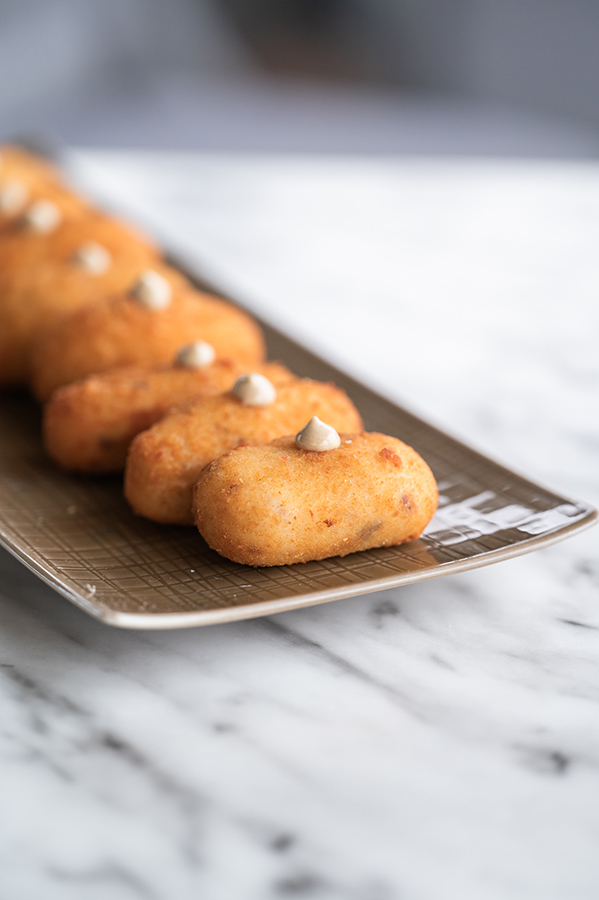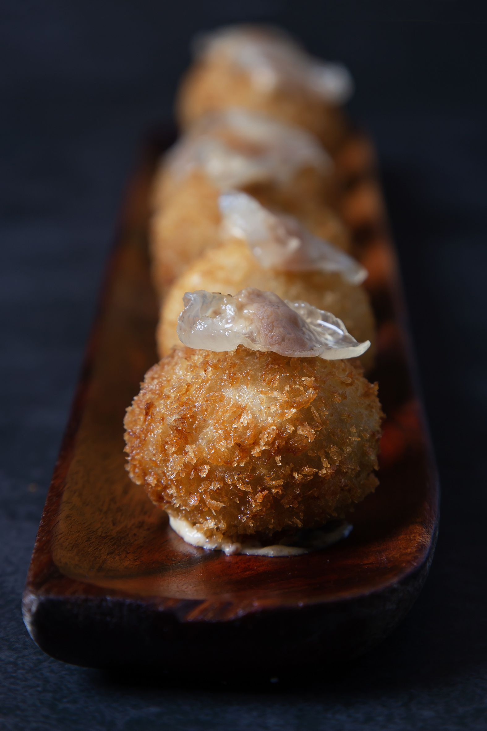 Croquetas de torrezno con Salsa Brava Juana Madrid