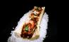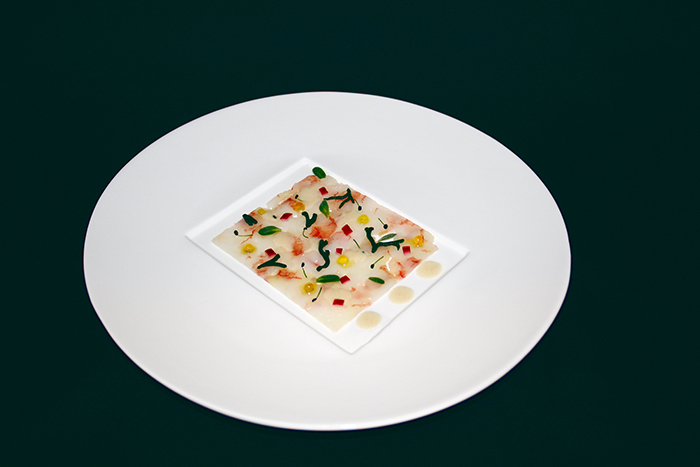 Ensalada de carpaccio de gamba, ajoblanco y algas