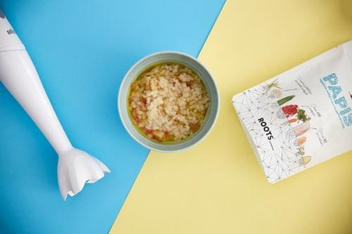 PAPIS de Roots Mindfoodness® supone una revolución en la forma de hacer los purés en casa. Los alimentos se presentan hervidos -sin aditivos, sal ni azúcares añadidos- y sin triturar, de manera que cada familia puede escoger el formato del plato final: dejarlo en trocitos para practicar el Baby Led Weaning (BLW), machacarlo un poco o triturarlo completamente para conseguir un puré.
