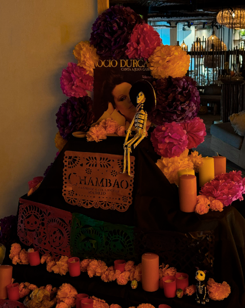 Cada año, Chambao dedica su altar a figuras relevantes, en 2024 estuvo dedicado a Frida Kahlo, símbolo de fuerza, pasión y arte. Este año, el tributo viaja hacia otra figura inmortal que unió México y España con su voz: Rocío Dúrcal, la eterna “reina de los mariachis”.