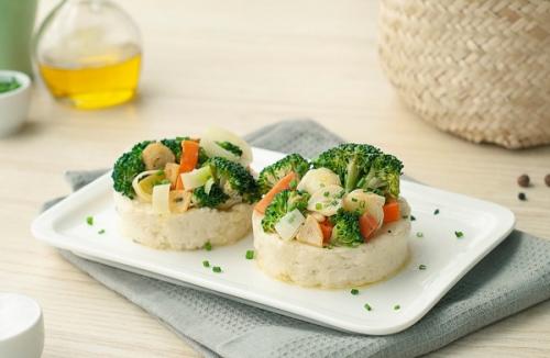Un principal sorprendente. Miren Aierbe sugiere un timbal de verduras con crema de patata como opción principal. Tanto la elaboración de esta receta como su presentación sacarán a relucir el chef que llevas dentro. Primero, pela y corta las patatas para cocerlas en agua con sal durante 20 minutos. Mientras tanto, calienta las verduras Micro brócoli, zanahoria y puerro de Florette durante tres minutos al microondas. Una vez terminen de cocer las patatas, machácalas y añade leche evaporada, mantequilla, sal, pimienta, nuez moscada y remueve el conjunto. Solo queda emplatar: dispón en un plato un poco de crema de patata con un molde metálico circular - ¡no demasiado grande! – que sirva como base para colocar encima las verduras. Quedará estético y con un color muy llamativo. Por último, dale un extra de sabor friendo un poco de ajo en láminas para acompañar a las verduras y aprovecha el aceite para salsear el timbal.