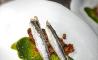 Una vez abierto al apetito, pasamos a los segundos: Calamar asado, refrito acidulado y trazos de su tinta, Ventresca de bonito asada con verduras, Solomillo de vaca Rossini... Y para quienes tengan morriña de sabores más potentes, el inamovible Pichón de Bresse que ahora mismo Iván prepara con carbonara, setas y trufa. Por cierto, que los postres también se adaptan a la temporada… ¿qué tal unas Frutas escabechadas con puré de zanahoria y helado de shiso?