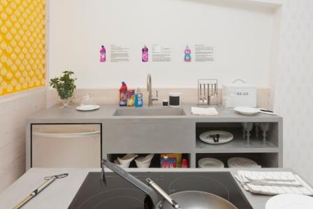 Bajo el concepto “Es nuevo? No, reciclado”, Henkel enseña como con sus propios productos de detergentes se puede realizar una cocina y un lavadero muy innovadores y atractivos. Se trata de un claro ejemplo de cómo se pueden utilizar materiales reciclados (productos, tapones, ingredientes, etc) sin perder un ápice de modernidad y funcionalidad y evocar un espacio como si fuera nuevo.