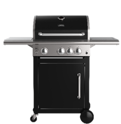 El Modelo T-BBQ 3100 G, acabado en acero inoxidable y negro mate, cuenta con unas parrillas de 58,3 x 40,8 cm y encendido electrónico automático. Incorpora cuatro quemadores, tres de ellos de 3,22 kW de potencia y un quemador extra lateral de 3,51 kW.