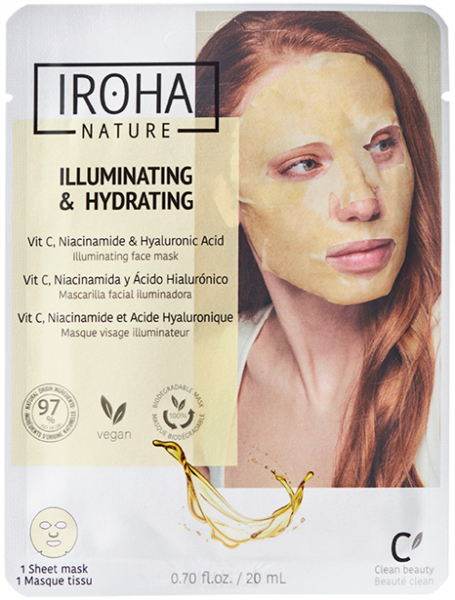 En este sentido, la Mascarilla Iluminadora e Hidratante con Vitamina C de Iroha Nature tiene resultados testados clínicamente y su eficacia ha sido avalada por mujeres reales, de las cuales el 100%** considera que el rostro está más luminoso, el tono de la piel unificado y la piel más revitalizada e hidratada. Además, el 90%** de ellas considera que las manchas se han atenuado. Esta mascarilla tiene un especial poder contra las manchas, ya que contiene dos activos despigmentantes muy potentes como son la Vitamina C y la Niacinamida.