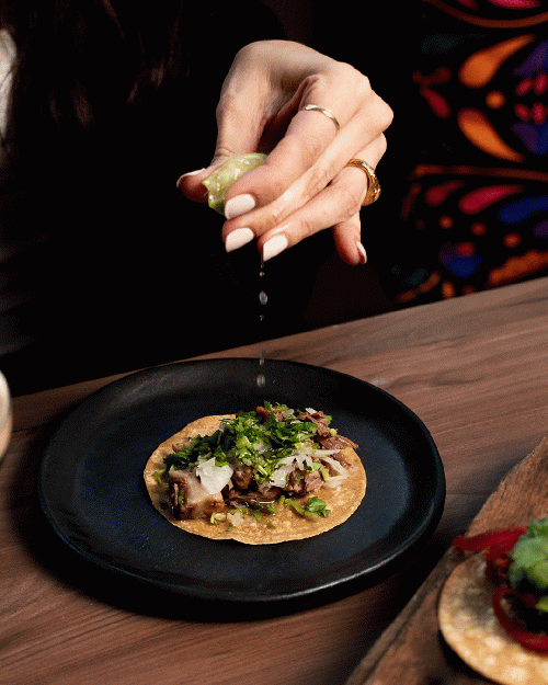 Cada receta está pensada para transportar al comensal al corazón gastronómico de México. Desde la cochinita pibil, cocinada a fuego lento al estilo yucateco, hasta los icónicos tacos al pastor, marinados con achiote y especias; del suadero de res, tierno y jugoso, a la costilla de res, melosa e intensa tras horas de cocción. La carta recorre también sabores imprescindibles como la tinga de pollo, con su punto ahumado y casero; las carnitas de cerdo, doradas y llenas de tradición; el taco gobernador de camarón, con queso gratinado y sabor a mar; y los hongos a la diabla, una opción llena de carácter, matices y frescura. Elaborados con ingredientes de máxima calidad y técnicas tradicionales, todos ellos ofrecen una versión fiel, deliciosa y contemporánea de uno de los platos más representativos de la gastronomía mexicana.