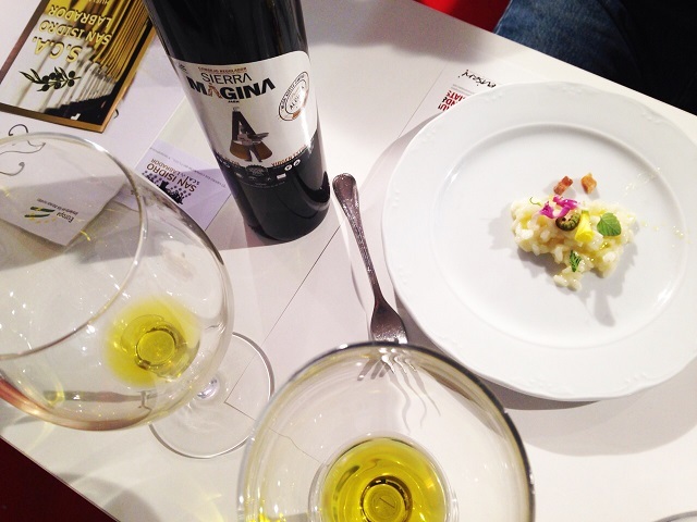 Como novedad, ha presentado una evolución del primer rissoto elaborado con aceite 100% virgen extra que ya lanzará en XVIII Salón de Alimentación del Atlántico, Salimat 2014, elaborado por Panepanna, en el que los ingredientes protagonistas son las verduras y frutas de temporada junto al aceite de oliva virgen extra de cosecha temprana de este Consejo Regulador. “El risotto es un plato del norte italiano elaborando tradicionalmente a partir de lácteos y grasas animales. Sin embargo, en los últimos años algunos cocineros italianos de primera fila han propuesto versiones contemporáneas en las que el aceite de oliva virgen extra cobra una importancia decisiva. Partiendo de estos antecedentes, hemos propuesto un risotto ligado con AOVE y en el que se juega con las notas de cata del aceite de la D.O. Sierra Mágina. Esto nos permite profundizar en el análisis sensorial de los aceites de la D.O. y, al mismo tiempo, proponer un guiño culinario desenfadado y novedoso que cuenta con la peculiaridad adicional de ir evolucionando a lo largo del año. En verano el tomate crudo y las hojas de higuera juegan un papel decisivo y hacia las navidades introducimos un guiño al Sur y a la temporada a partir del turrón de Xixona y de la piel de la naranja amarga”, subraya Anna Mayer, responsable de Panepanna.