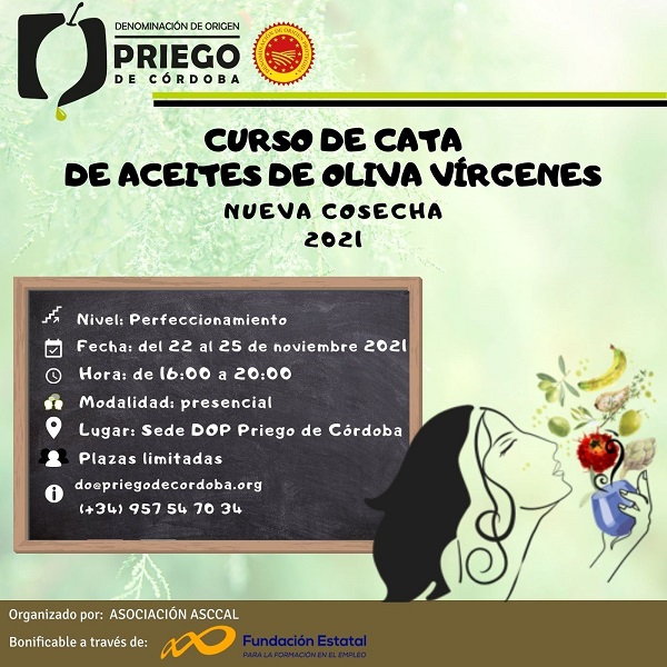 La D.O.P. Priego de Córdoba, a través de la Asociación para el Control de la Calidad de los Aceites de la Comarca de “Priego de Córdoba” (ASCCAL), ha programado un nuevo curso de cata de aceites de oliva vírgenes de nueva cosecha en lo que será su primera formación presencial tras la pandemia.