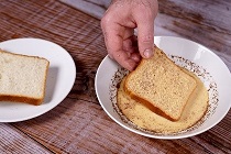 2- Pasar las rebanadas de pan por ambos lados por la mezcla de huevo, leche, canela y vainilla.