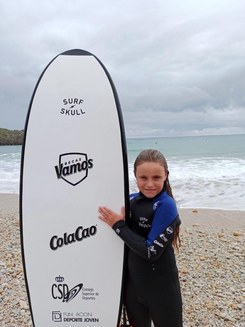 Me encanta el mar. Siempre me llamó la atención. En la playa es donde me siento más libre porque es como un patio inmenso en el que puedo descargar mi energía y disfrutar de la naturaleza en estado puro’ proclama la joven amante del surf Elía Menéndez. Ahora acaba de conseguir de la mano del Consejo Superior de Deportes (CSD), ColaCao y la Fundación Deporte Joven una de sus Becas Vamos, una ayuda enmarcada en el programa ADB2020. La beca, que consiste en el material deportivo necesario para que el club pueda crear 150 nuevas plazas, permitirán a muchos más niños y niñas de Surfskull disfrutar del deporte en pleno contacto con la naturaleza, potenciando al máximo sus múltiples beneficios. Además, el nuevo material, consistente en tablas, paddle surf y neoprenos, permitirá que se puedan llevar a cabo actividades de integración social con la asociación ‘Surf Solidario’, un proyecto que ha desarrollado el club para acercar el surf a aquellos niños que más los necesitan, y en el que la becada y sus compañeros se implicarán de forma activa. El embajador del proyecto y “asturiano de adopción” Saúl Craviotto, ha destacado: ‘cuando conocí la historia de Elía me pareció increíble. A pesar de su juventud, tiene muy claro su estilo de vida y representa a la perfección unos valores que personalmente me representan al cien por cien: deporte, naturaleza y compañerismo’, afirma el piragüista olímpico y también miembro del jurado del proyecto.