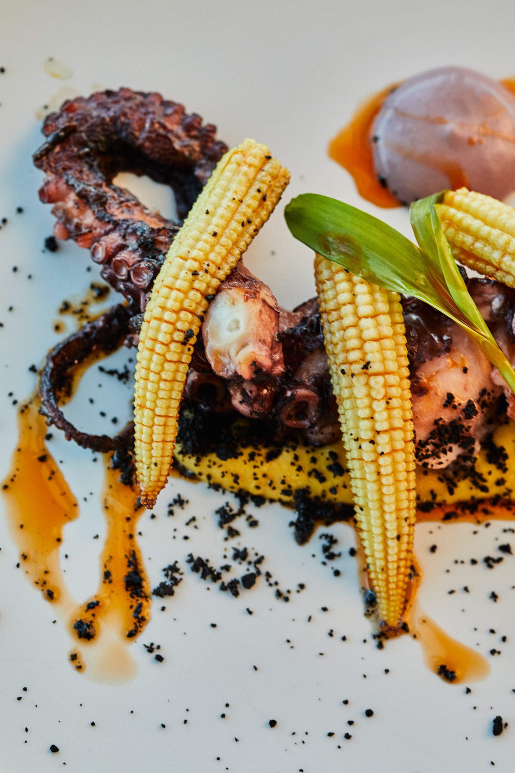 La propuesta gastronómica fusiona audacia y técnica en platos como los Tacos de mollejas y el Bourguignon de atún rojo. La influencia global se siente en la Corvina thai con coco, curry y hierbas aromáticas. Los sabores cálidos del otoño llegan con el Arroz meloso de carrilleras ibéricas, el Guiso de setas de temporada y el Pulpo con maíz, culminando con el lujo del Solomillo de vaca con foie y trufa.