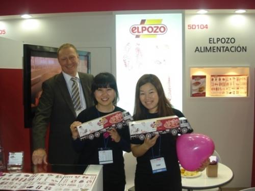 La firma de alimentación líder enla elaboración de alimentos con base cárnica acudía a la feria de la mano del Instituto Español de Comercio, ICEX, con expectativas de fortalecer sus actividades en el mercado Coreano y, cuando todavía quedan dos días para que finalice la feria, el balance es más que positivo dado que la promoción de despiece congelado, caídos y carne de cerdo blanco e ibérico que está realizando el equipo comercial en el stand está siendo satisfactoria y de las firmas que están ubicadas en el pabellón español ElPozo es la que mayor acogida ha tenido..