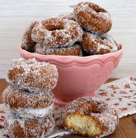 | Ingredientes para hacer Buñuelos de viento • 125 gr de harina Schär Mix Dolci - Mix C • 100 ml de agua • 100 ml de leche • 30 gr mantequilla • 2 huevos • 1 cucharada de azúcar • 5 gr de sal • ½ cucharadita de bicarbonato • Aceite de girasol • Azúcar y canela |