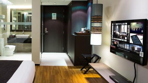 La primera línea consiste en analizar y desarrollar funciones que un expositor interactivo puede realizar en un establecimiento hotelero, incluso llegando a ser instalado en las habitaciones del hotel para ser utilizado por los clientes. Esta actividad ha obtenido los primeros resultados, y Movilok ha evolucionado Showcases, su escaparate interactivo basado en el acceso desde el móvil, incorporando 5 nuevas funcionalidades a su solución que convierten la experiencia del cliente en mucho más completa. Estas son la conexión con el sistemas de reservas de servicios ofrecidos por un hotel (spa, peluquería, restaurante, masajes, etc.), conexión con el servicio WiFi del establecimiento mediante lectura de código QR, conexión con servicio de videollamada para poder comunicar con recepción, plataforma de cupones descargables con ofertas de servicios del hotel o de establecimientos asociados y conexión con el servicio de habitaciones para poder realizar pedidos. Todos estos nuevos servicios aparecen expuestos en la pantalla de TV de cada huésped del hotel como punto de visualización y son accesibles por el usuario desde su teléfono móvil, que ejerce de punto de interacción y operación. Movilok ofrece estos servicios de forma autónoma o también se pueden integrar dentro de los propios sistemas de gestión del hotel si los tuviera.