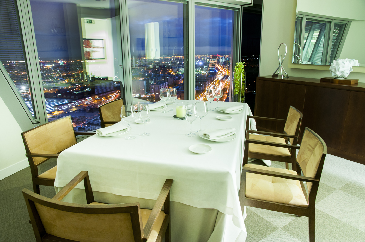 A unos 130 metros de altura y con unas espectaculares vistas de la capital madrileña, una cena romántica o de amigos se disfruta más, y una reunión de empresa se sobrelleva de mejor manera… Y es que Espacio 33 (Pº de la Castellana 259-D. Torre Espacio. Madrid. Tel. 91 427 68 91. www.espacio33.es), además de ser un magnífico restaurante, el más alto de España, es un lugar perfecto para celebrar eventos de toda índole.
