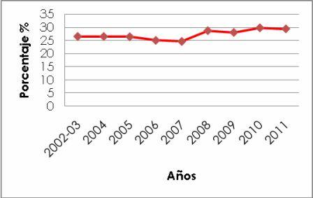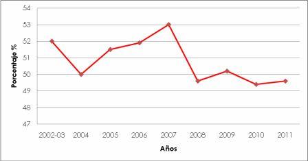 Entre 2009 y 2011 el porcentaje de las 50 líneas de productos con mayor índice de hurto que no cuenta con protección específica desciende de un 28% a un 24%.