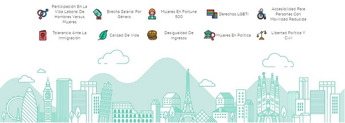 El estudio realizado por la startup de alquiler de pisos ha analizado diferentes variables con respecto a la igualdad: número de mujeres con trabajo remunerado, distribución de la riqueza, brecha salarial por género, presencia de la mujer en principales corporaciones, calidad de vida, accesibilidad a las personas de movilidad reducida, derechos políticos y libertades civiles y aceptación tanto del colectivo LGBTI como inmigrantes.