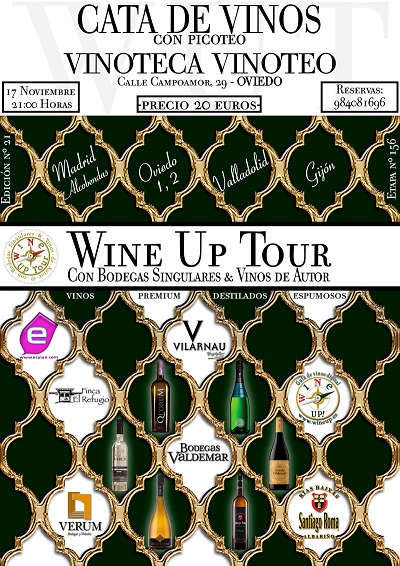 El Wine Up Tour vuelve a Asturias con la edición nº 21 bajo el título “vinos Premium y espumosos”. Tres eventos se han programado para esta propuesta de “enoturismo inverso” en la que Joaquín Parra, promotor del Wine Up Tour hará un recorrido por grandes vinos y espumosos de la geografía nacional.